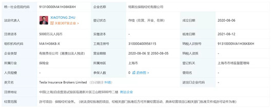 也正因如此,特斯拉在今年8月6日,已经位于国内正式成立保险经纪有限公司,注册资本为5000万元人民币,法定代表人是特斯拉全球副总裁、大中华区负责人朱晓彤,经营范围为保险经纪业务。