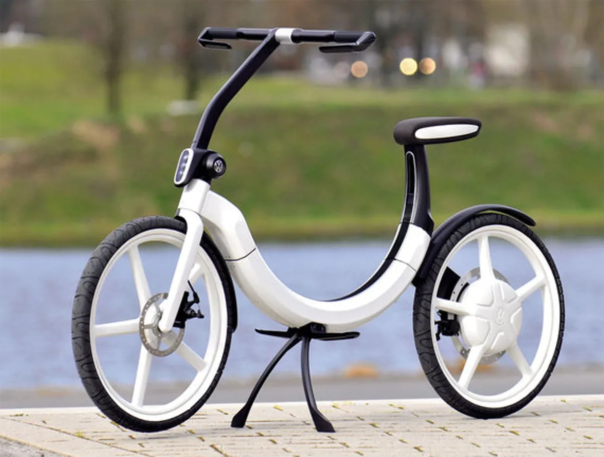 比如2010年,大众就推出了一款概念折叠电动自行车——Bik.e。没有踏板,最高时速可达20公里/小时,续航里程大约20公里。因为没有公布更具体的信息,市场猜测Bik.e的锂离子电池和轮毂电机可能内置在了后轮中。
