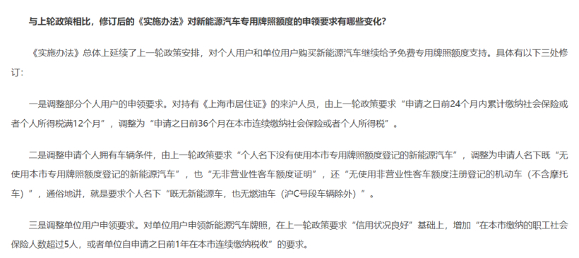 个人消费者不仅被要求连续3年缴纳社保或个人所得税,而且名下必须既无新能源车,也无燃油车(沪C号段车辆除外),同时单位用户需要满足的条件也有所增加。