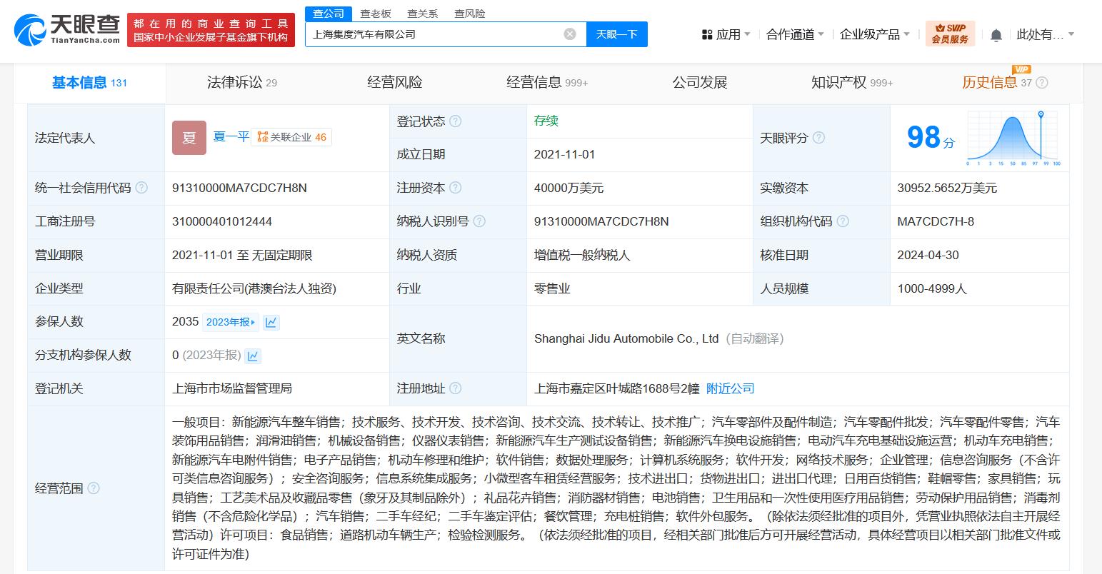 集度汽车成立于2021年3月,由百度和吉利共同打造,致力于自动驾驶、人机交互科技的研发与普及,目标是打造汽车机器人。上海集度汽车有限公司成立于2021年11月,法定代表人为夏一平,注册资本4亿美元,由集度汽车(香港)有限公司全资持股。
